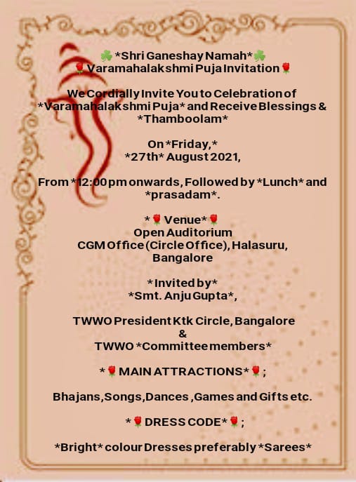 - Karnataka TWWO was rewarded for its active working - by Mrs Manjari Purwar President TWCO Pan India. Our hon'ble President TWWO Mrs Gowri Ravi madam has received the reward at New Delhi 2023